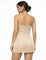 This short fit and flare mini dress features a structured tube bodice designed to give a snatched, body-fitting silhouette. Crafted in beige and brown tones, the dress is tailored with a clean finish and subtle handwork detailing on the top. Organza fabric is used as part of the detailing, adding structure and shape without heaviness.